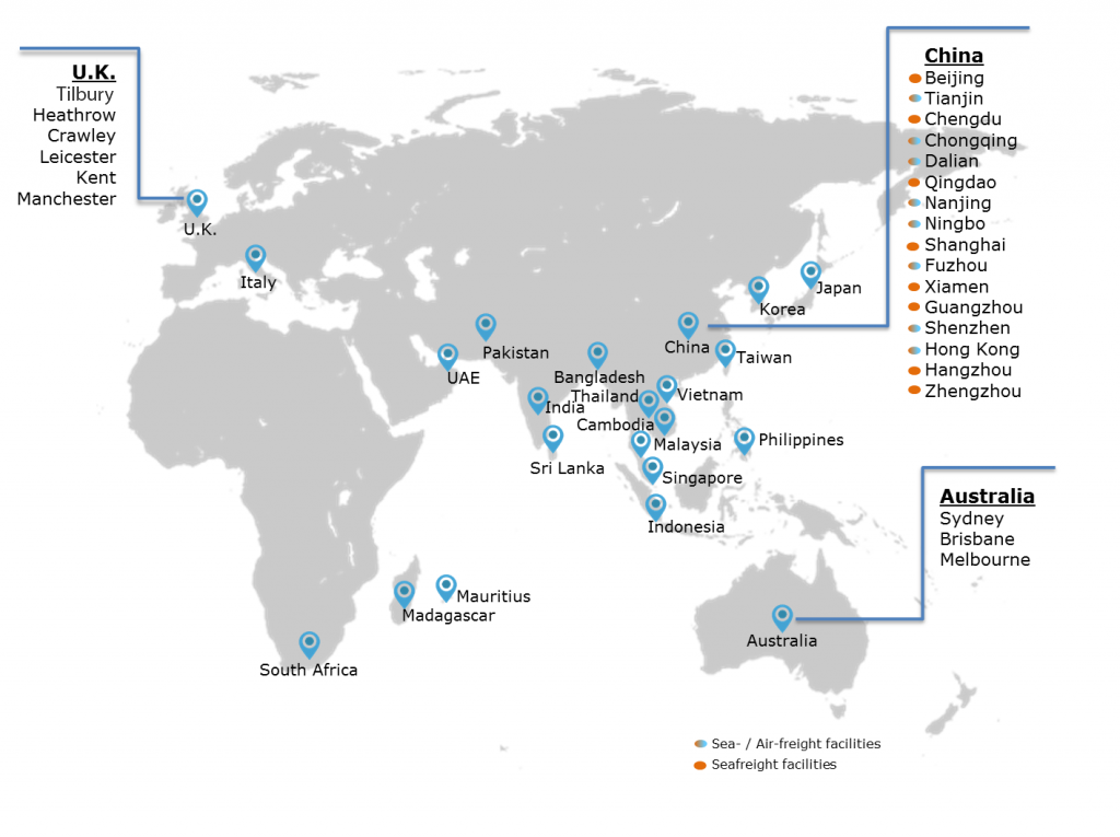 We own and operate many of our own warehouses and storage facilities in Hong Kong (China), Shanghai, Shenzhen, and Singapore, where we manage over 4 million square feet ( 400,000 square metres ) of warehouse space.